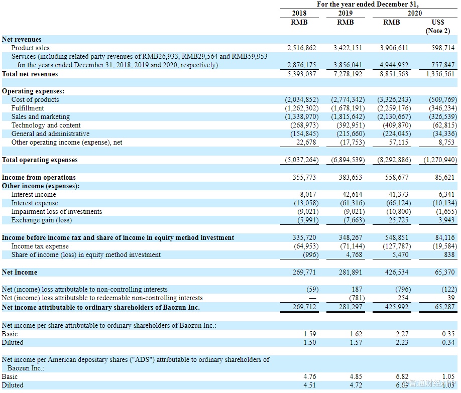 财报显示,宝尊电商2020年营收达88.52亿元,上年同期为72.78亿元;净利润为4.27亿元,上年同期为2.82亿元;基本每股收益为2.27元,上年同期为1.62元。