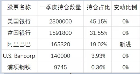 芒格所谓的“一小部分”,是指约19%。从公布的持仓可以看到,除了阿里巴巴外,Daily Journal主要持有美国银行(BAC.US)、富国银行(WFC.US)作为其现金等价物,其中第一大重仓股美国银行,占比约45%。 相关持股情况如下图。