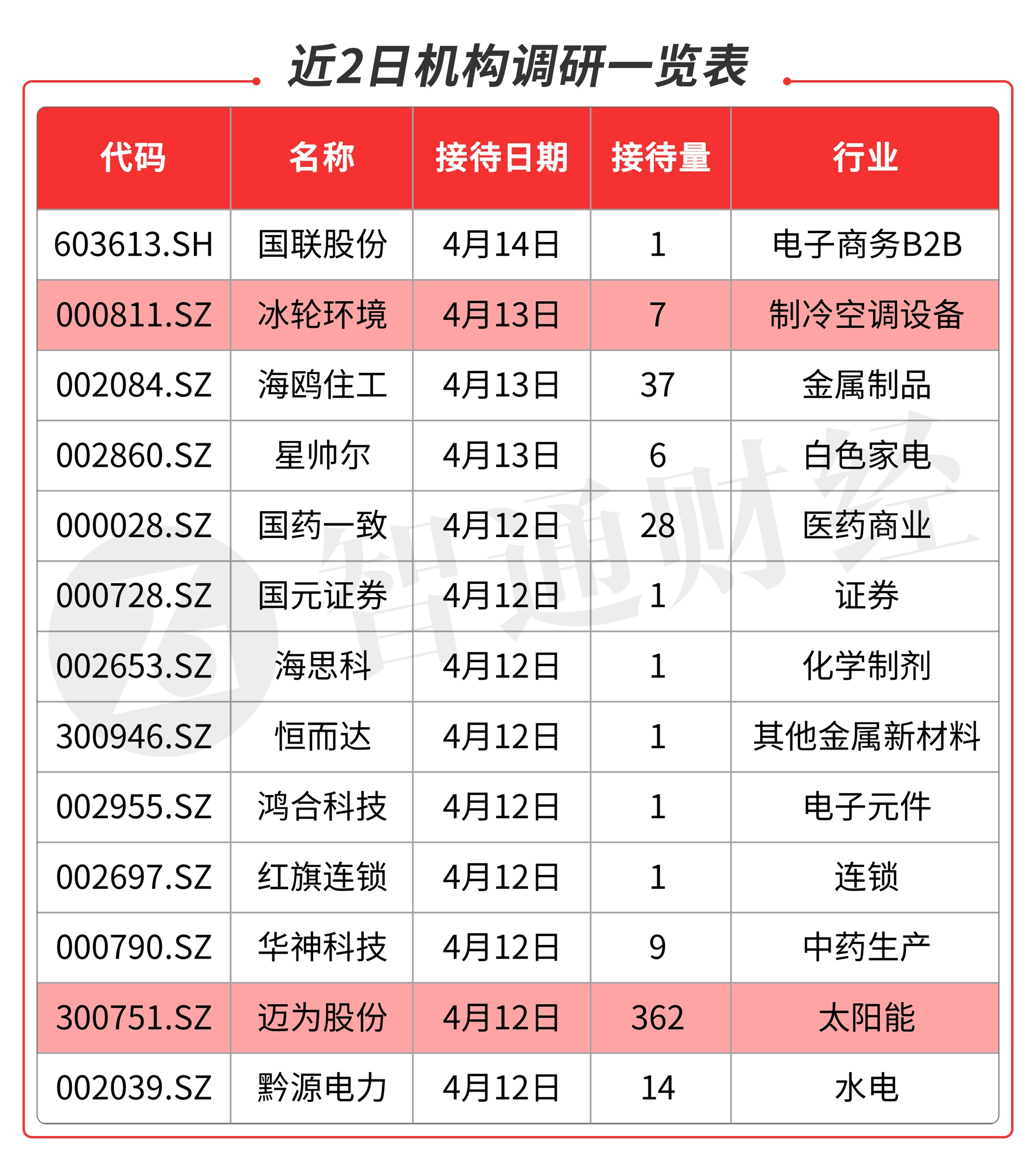 迈为股份(300751.SZ):近期获南方基金、新华基金、华夏基金、广发基金等机构密集调研。
