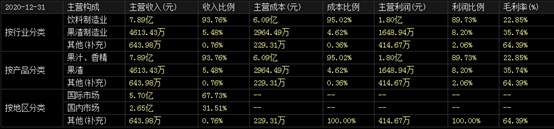需要注意的是,按照地区划分,2020年公司来自国内市场收入占比31.51%,国际市场收入占比67.73%,国际市场包括亚洲其他国家、北美洲、大洋洲等,其中原来北美洲是安德利果汁的重要国际市场来源,2018年收入占比达到38%位居第一,中国市场22%排名第二。