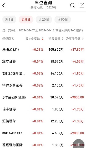 在消息面上,除了3月30日发布业绩公告外,还有4月9日的利润分配和股份回购情况。但就在昨日,安德利果汁还遭Mitsui & Co., Ltd.在场内以每股均价6.7925港元减持8.95万股,涉资约60.8万港元。减持后,Mitsui & Co., Ltd.最新持股数目为20,318,000股,持股比例由21.09%下降至20.99%。