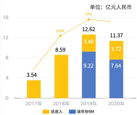 2020年初的新冠疫情对中国金融服务业造成负面影响,这亦间接对公司的业务造成些许影响,但以当下趋势来看,百融云创的业务已经迎来了稳健而快速的企稳向好。从往绩披露数据来看,2020年前三季度,公司实现收入为7.64亿元,同比减少17.1%。随着中国疫情形势逐渐好转,公司的业务开展迎来快速反弹,全年实现收入11.37亿元,同比降幅收窄至9.9%。值得注意的是,公司的 2020年第四季度单季营收达到3.72亿元,同比增长10%,展现了强劲回暖态势。
