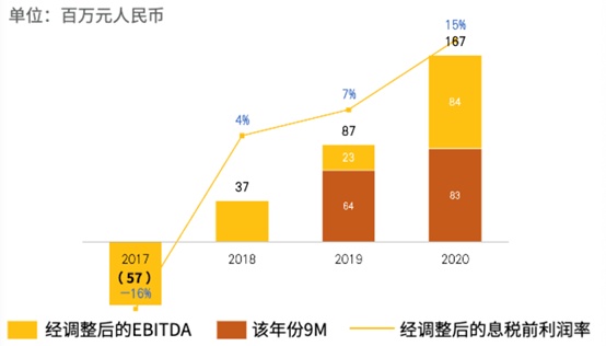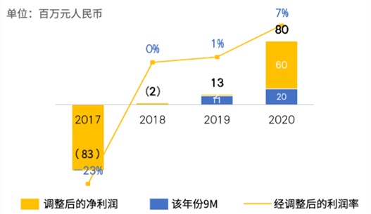 在经调整利润方面,百融云创增长领先态势同样明显。数据显示,剔除股份基础付款、优先股公允价值变动、可转换贷款公允价值变动以及上市开支等非经营性影响因素的经调整净利润,百融云创2017-2020年分别为-8320万元、-161.7万元、1307.1万元和8004.4万元,成功实现正向循环。
