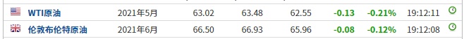 截至发稿,WTI原油跌0.21%,报63.02美元/桶。布伦特原油跌0.12%,报66.50美元/桶。