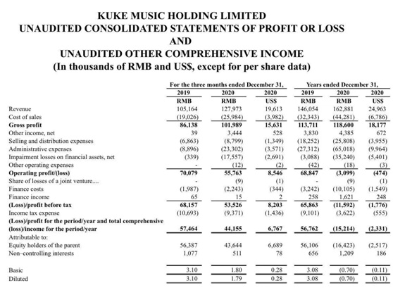 数据来源:库客音乐2020第四季度及全年财报