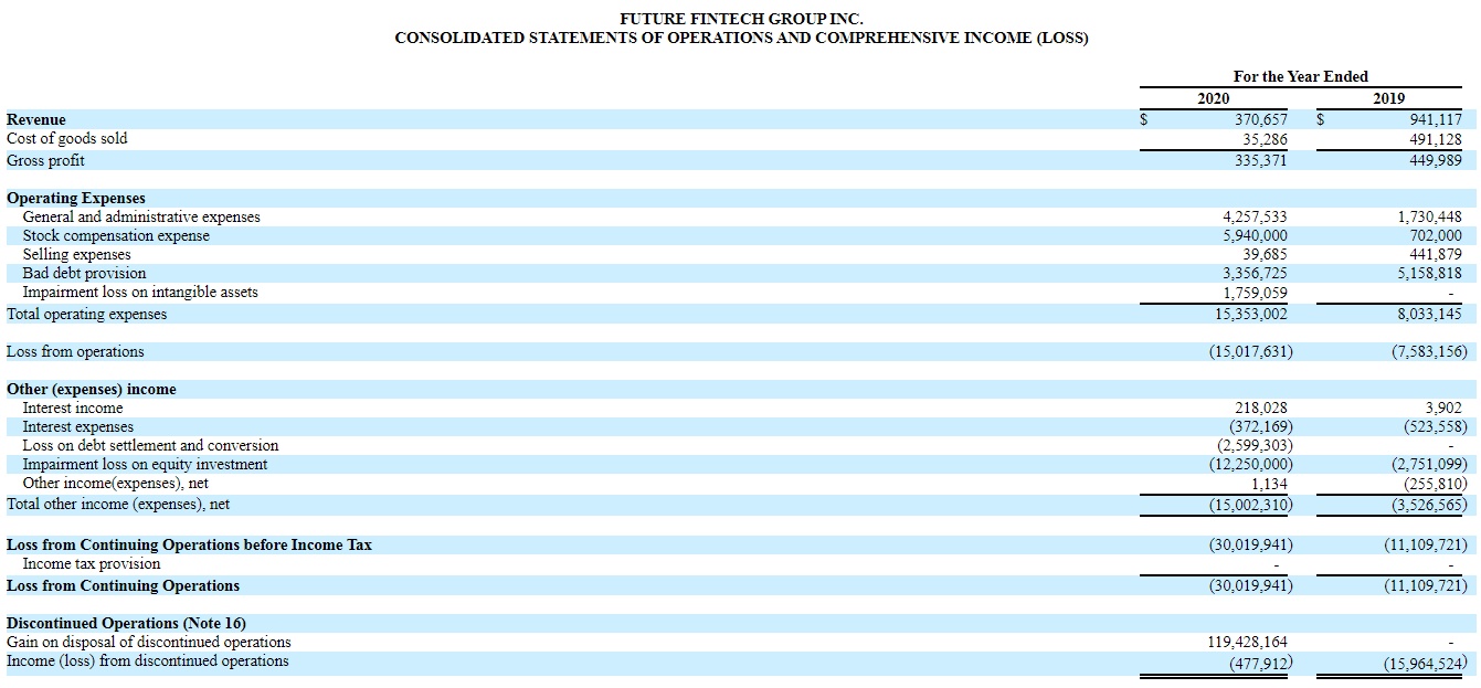 智通财经APP获悉,4月15日,未来金融科技(FTFT.US)向美国SEC递交了10K年度报告,披露了2020年业绩和最新股权结构。其中,公司2020年营收为37.07万美元,上年同期为94.11万美元。