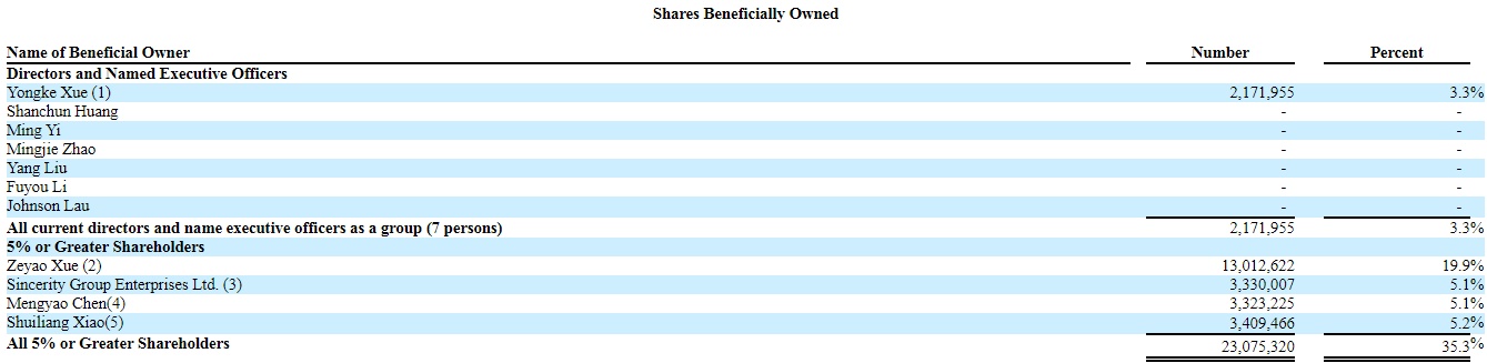 截至2021年4月12日,董事会主席Yongke Xue持有公司3.3%的股权。