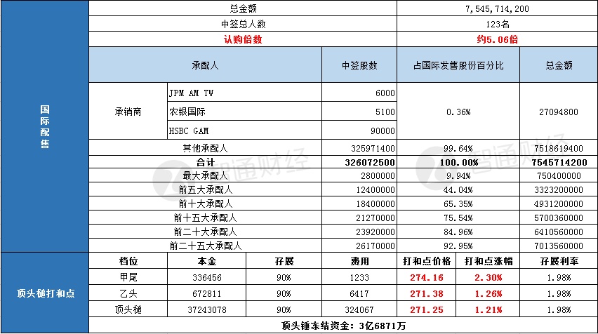 国际配售申购人数未披露,认购倍数约5.06倍。