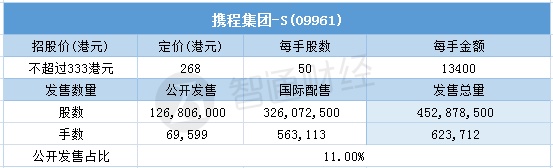 智通财经APP获悉,4月16日,携程集团-S(09961)配售结束。配售招股价不超过333港元,最终定价268港元,每手13400港元。