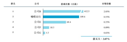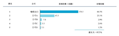 在市场空间不断扩大的背景下,作为行业先行者与NO.1的嘀嗒出行有望深度受益。根据招股书披露,中国的顺风车市场高度集中,按顺风车搭乘次数计算,前三大市场参与者占据94.5%的市场份额。而其中,嘀嗒出行又占据了66.5%的份额,颇有一家独大的意思。