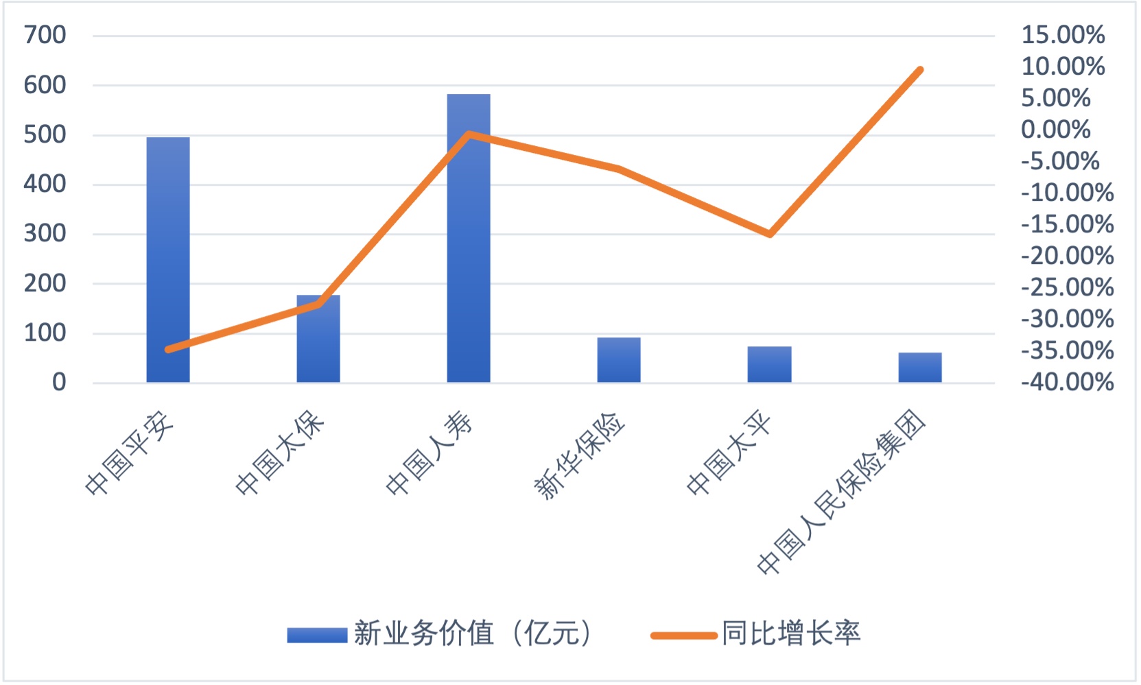 新业务价值:中国人寿雄踞首位,中国人民保险集团唯一实现正增长