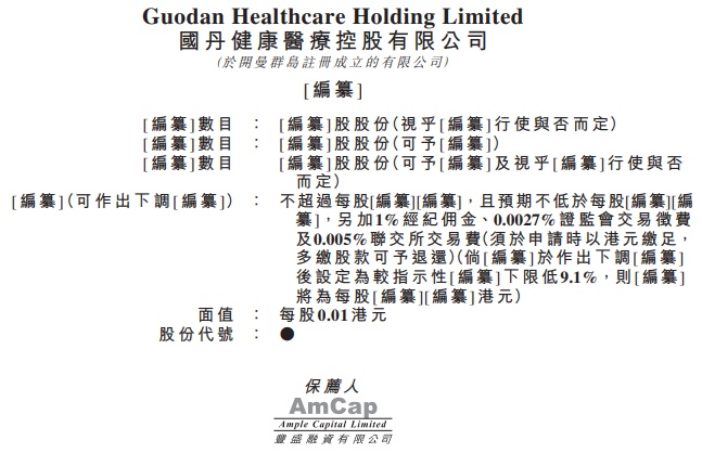 智通财经APP获悉,据港交所4月16日披露,国丹健康医疗控股有限公司(简称“国丹健康医疗”)向港交所主板递交上市申请,丰盛融资有限公司为其独家保荐人。该公司曾分别在2019年8月底、2020年4月和10月向港交所主板递交上市申请,目前均已显示失效。