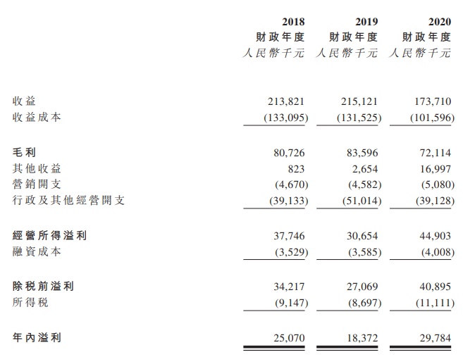 该公司的收益主要来自于中国提供综合医院服务。截至2020年12月31日止三个年度,公司分别录得收益约2.138亿元(人民币,下同)、2.151亿元及1.737亿元。期内溢利分别为2507万元、1837.2万元及2978.4万元。