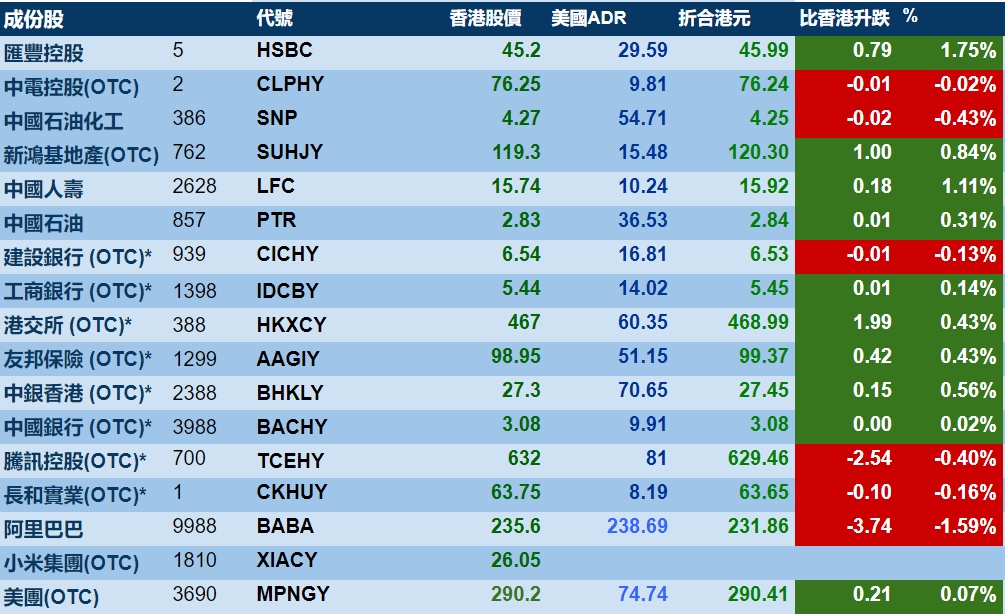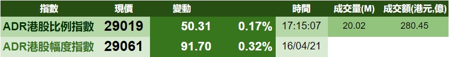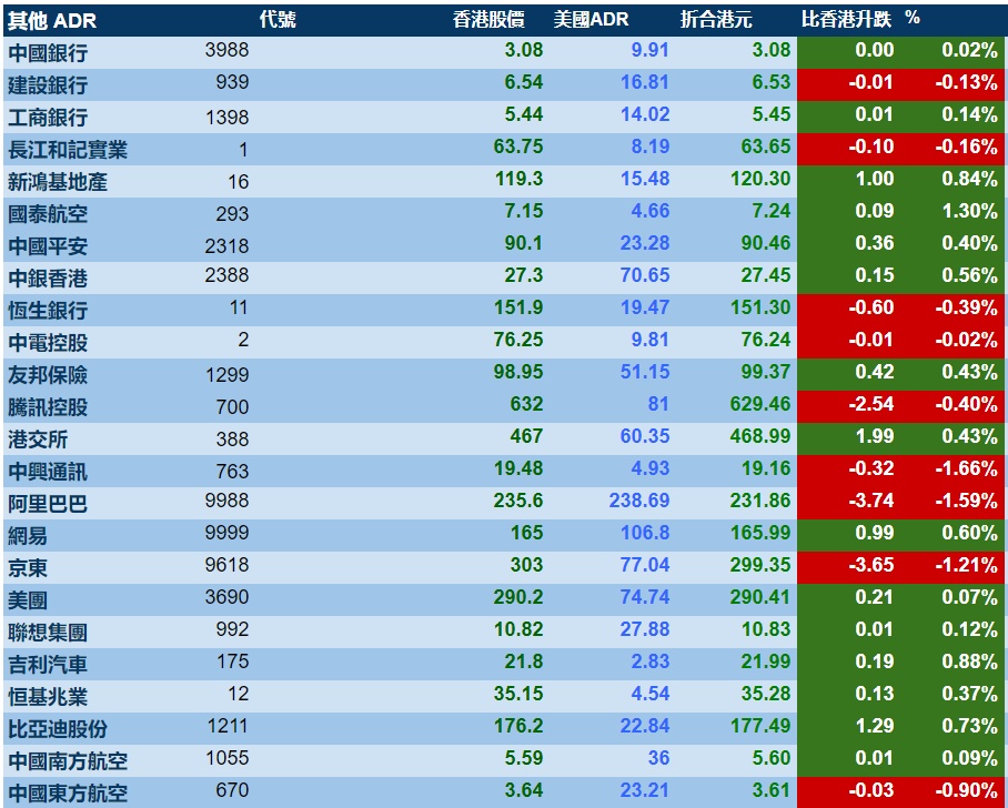 智通财经APP获悉,周五美股三大指数齐涨,港股ADR指数上扬,按比例计算,收报29019点,涨50.31点或0.17%。