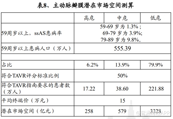 对于渗透率只有0.3%的中国市场来说,需求是远远没有被满足的。根据兴业证券的测算,2020年主动脉瓣膜国内潜在市场空间(仅针对主动脉瓣狭窄),高危患者的潜在市场空间为258亿元,中危及低危市场空间则更大。因此,一旦渗透率有所提升,TAVR市场将爆发出巨大潜力。