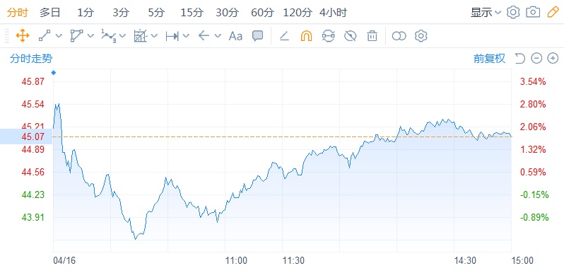 受亮眼的一季报表现提振,福耀玻璃A+H股股价次日双双走强——4月16日,福耀玻璃H股高开高走,截止收盘股价上涨3.23%,报于44.7港元;福耀玻璃A股亦保持震荡上行态势,截止收盘股价上涨1.74%,报于45.07%。