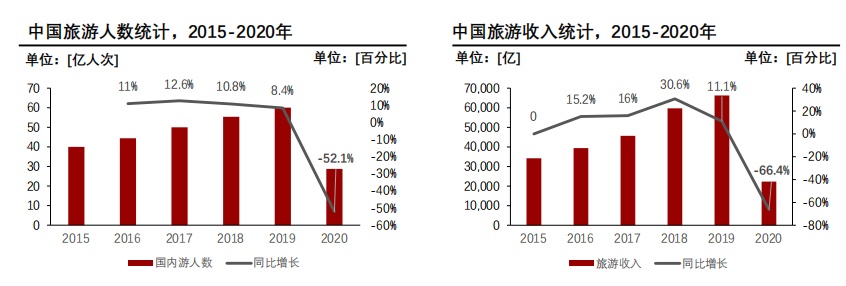与此同时,旅游人数的骤降也导致国内旅游收入大幅下滑:据智通财经APP了解,2020年度中国旅游收入2.23万亿元,同比下降66%。其中,城镇居民人均每次出游花费 870.25元,下降18.1%;农村居民人均每次出 游花费530.47元,下降16.4%。
