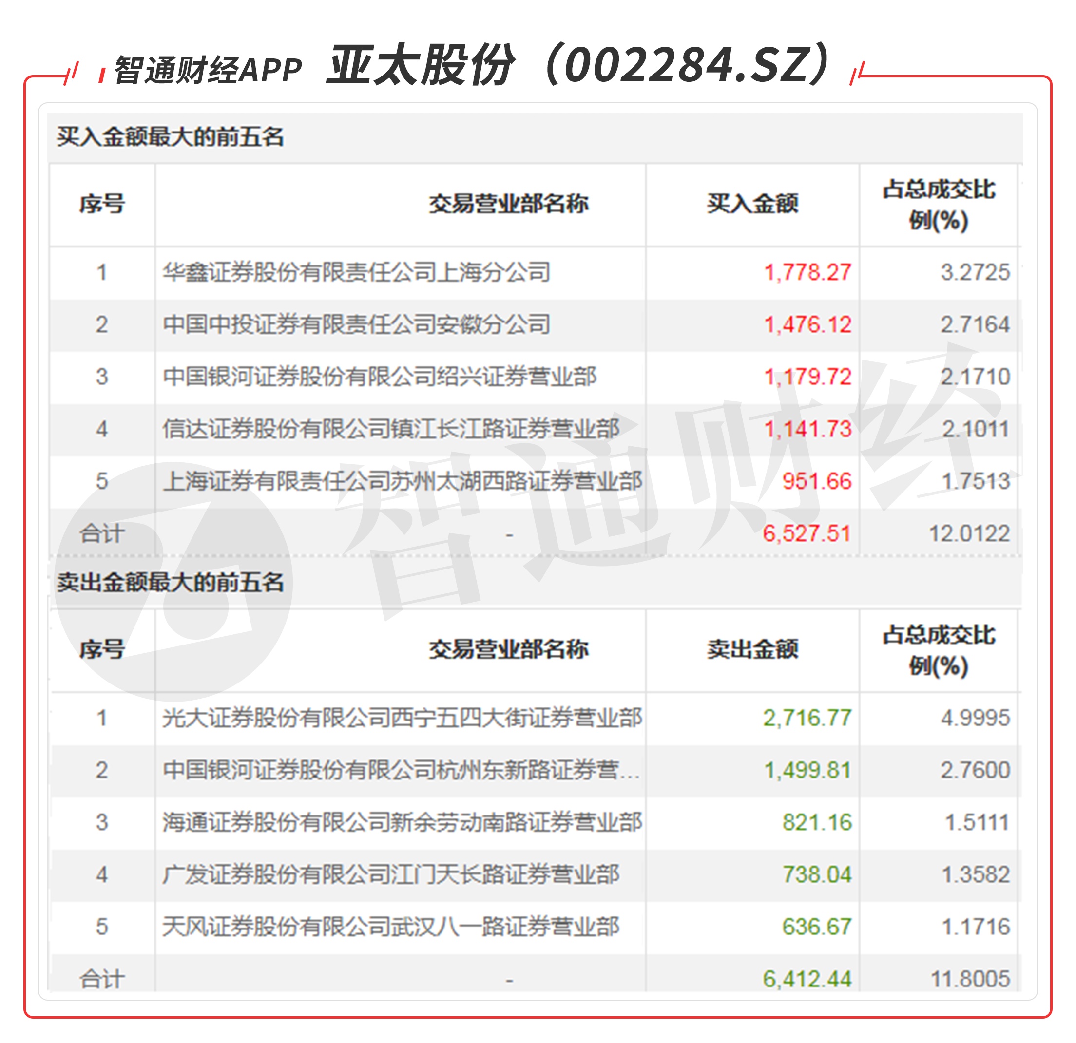 亚太股份(002284.SZ):受多家游资青睐,买一是知名游资的席位买入1778万元。买三是知名游资赵老哥的席位买入1180万元,当日买卖均衡,该股今日一字板涨停,主力做多欲望强烈,值得看高一线。