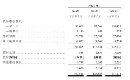 从存货周转率来看,环龙控股表现可圈可点。公司的存货周转天数从2018年的65.9天减少至2020年的46.9天。作为典型的上游企业,环龙控股的应收账款表现不容忽视。报告期内,公司的应收账款分别为1.07亿元、1.29亿元、1.41亿元。