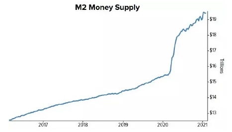 因为美国历史上差不多20%的美元,都是在2020年+2021年印出来的。