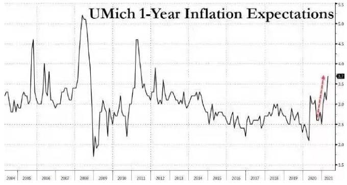 老美那边就连一年期通胀预期,也在急剧升高了。上一次升高这么快,还是08年以后那次直升机撒钱。