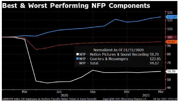 观察美国的非农就业数据,现在不少行业就业数据甚至已经超过了疫情之前。