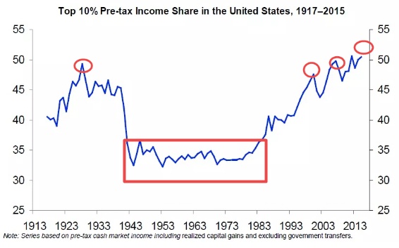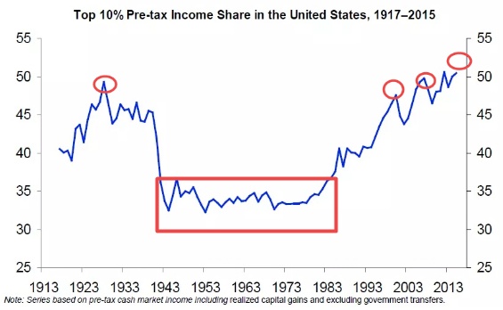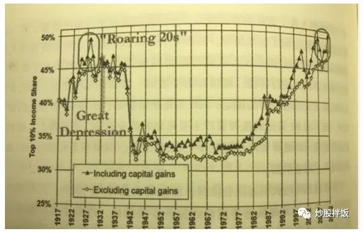 1929年因为老美社会整体贫富差距太大,引发全球消费不足,最终带来了大萧条