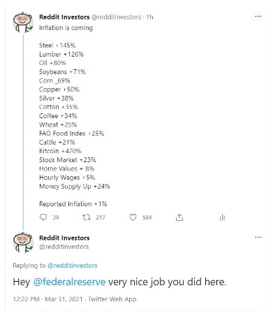 昨天看到一件笑死人的事儿,一个哥们在美联储推特下面吐槽通胀问题,居然被拉黑了。