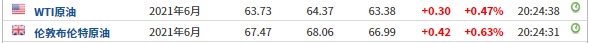 截至发稿,WTI原油涨0.47%,报63.73美元/桶。布伦特原油涨0.63%,报67.47美元/桶。