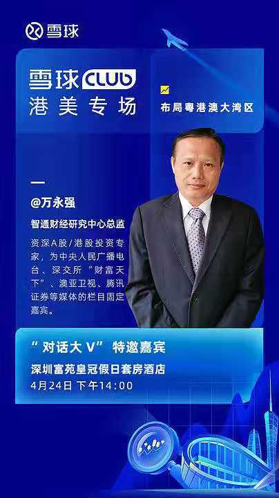 智通财经APP获悉,本周六(4月24日),雪球Club港美专场活动将在深圳举行,本站主题为“布局粤港澳大湾区”。此次的活动新增两位重磅对话嘉宾空降到现场活动中来,他们就是智通财经研究中心总监万永强以及陈达。