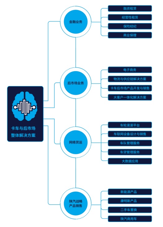 根据官网介绍,德银天下是陕汽集团资源整合的产物,即融资租赁(含经营性租赁)、卡车物流服务平台(车轮滚滚)、保险经纪、商业保理和车联网等“后市场”板块,是陕汽集团的全资子公司。
