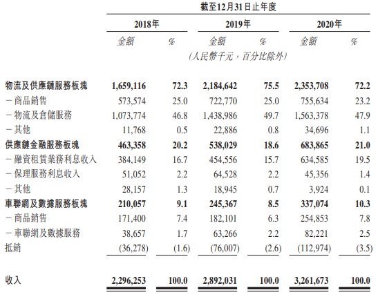 通过整合商用车全产业链的多个环节以及覆盖商用车全生命周期,德银天下将目前业务组合分为了三大部分,涵盖物流及供应链服务板块,包括供应链业务、整车销售业务及后市场产品业务;供应链金融服务板块,包括融资租赁业务、保理业务和保险经纪业务;及车联网及数据服务板块。