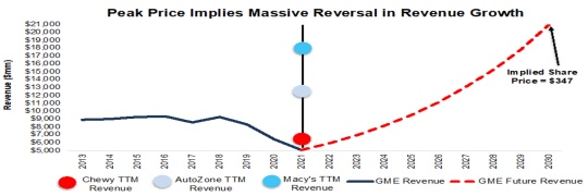 下图为Gamestop的历史收入与DCF估值模型下的预测收入对比。