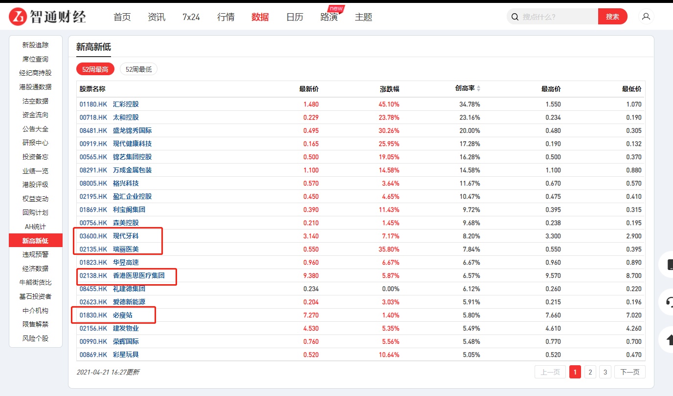 而最近最热门的板块无疑是医美板块了,从A股最正宗的几家标的走势可以看出,这个板块的主力品种已经打开了上涨趋势,在不时传来产品消息以及未来国内市场大概率增长的预期下,行情可能还会继续延续。这也给国内市场面上所有相关标的都带来了上扬的机会,目前,从智通财经数据板块看到的52周新高来看,不少个股均是医美概念标的,显然目前资金依旧认为医美市场是性感的,不过炒作的值博率还是要考虑性价比。