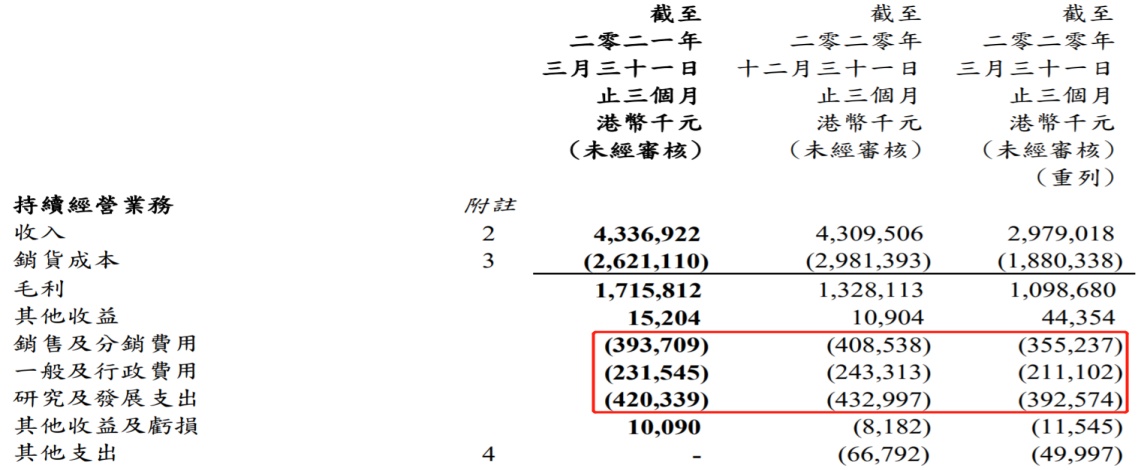 报告期内,ASM太平洋的收入为43.37亿港元,同比增长45.6%。虽然有2020年同期低基数的影响,但该收入表现仍超出公司的指引上限,且与上一个季度相比,环比增长0.6%,证明公司业绩“淡季不淡”。