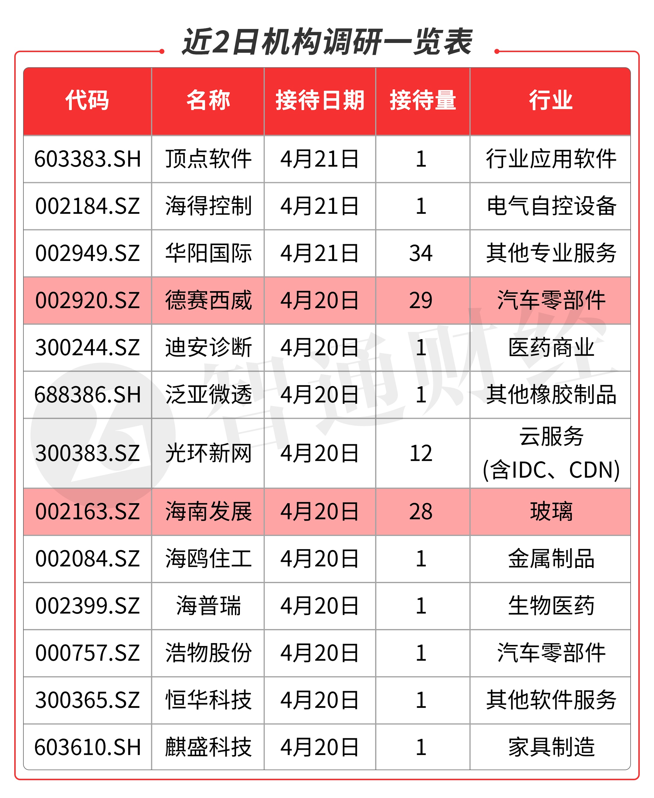 【导读】近期,德赛西威(002920.SZ)和海南发展(002163.SZ)获多家机构密集调研。