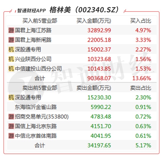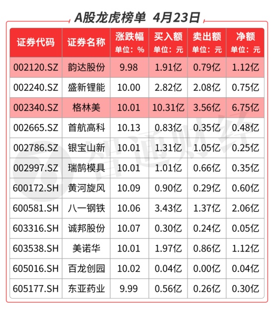 格林美(002340.SZ):龙虎榜阵容强大,深股通对倒,买一是知名游资章盟主的席位买入3.29亿元。买四是知名游资方新侠的席位买入1.01亿元,当日净买入6.75亿元,该股今日突破今年一月以来的大箱体,预计走趋势为主。