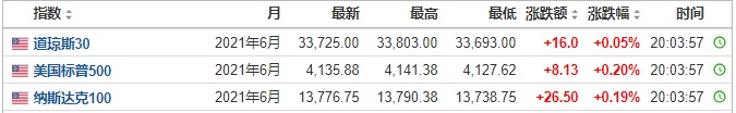 科技股方面,苹果(AAPL.US)盘前涨0.21%,Facebook(FB.US)盘前涨0.62%,亚马逊(AMZN.US)盘前涨0.25%,微软(MSFT.US)盘前涨0.24%。