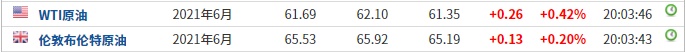 截至发稿,WTI原油涨0.42%,报61.69美元/桶。布伦特原油涨0.20%,报65.53美元/桶。