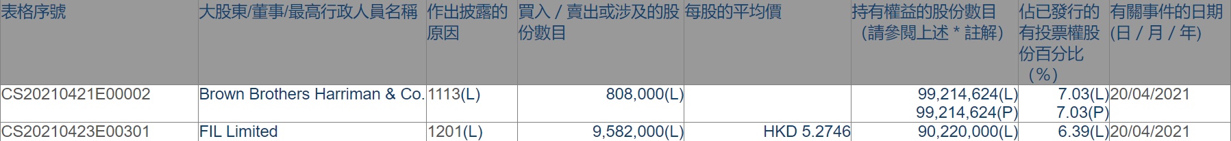智通财经APP获悉,香港联交所最新资料显示,4月20日,FIL Limited减持鞍钢股份(00347)958.2万股,每股作价5.2746港元,总金额约为5054.12万港元。减持后最新持股数目为9022万股,最新持股比例为6.39%。