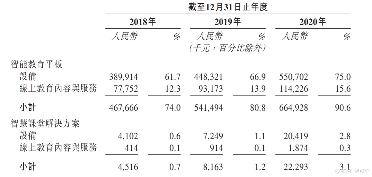 财务方面,公司收入由2018年的人民币(下同)6.318亿元增加6%至2019年的6.699亿元,并进一步增加9.6%至2020年的7.34亿元。该公司收入主要来自于销售智能教育平板,2020年占总收入的75%。于往绩记录期间(2018至2020年),线下经销商的销售额分别贡献公司2018年、2019年及2020年总收入的93.8%、91.7%及85%。