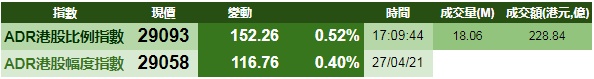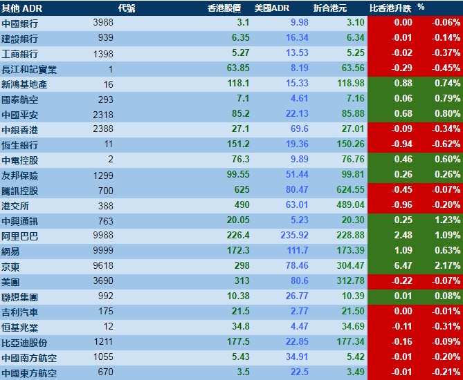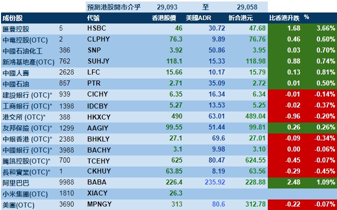 智通财经APP获悉,周二美股三大指数涨跌不一,港股ADR指数上扬,按比例计算,收报29093点,涨152.26点或0.52%。
