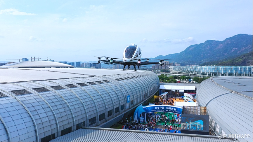 EH216自动驾驶飞行器在数字中国建设峰会进行载人飞行演示