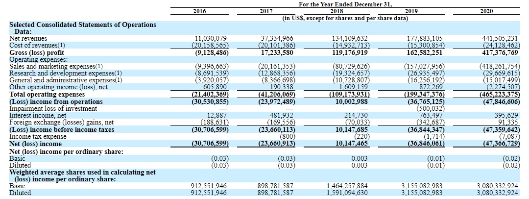 财报显示,触宝科技2020年净营收为4.42亿美元,上年同期1.78亿美元;毛利为4.17亿美元,上年同期1.63亿美元。