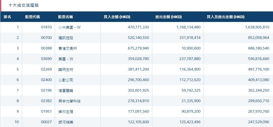 港交所(00388)获净买入6.64亿港元。消息面上,香港交易所午间公布首季业绩,期内营收59.6亿港元,同比增长49%;股东应占溢利38.4亿元创季度新高,同比升69.76%;一季度平均每日成交金额创季度新高达2244亿港元,同比增加86%,环比增加59%;期内沪深港通北向及南向交易量庞大,平均每日成交金额分别创人民币1,268亿元及608亿元的季度新高;期内共有32只新股上市,集资额达1366亿港元,同比增超9倍。