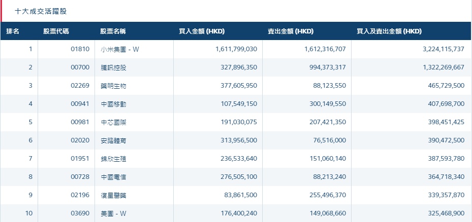 此外,舜宇光学(02382)、安踏体育(02020)、锦欣生殖(01951)分别获净买入2.56亿、2.37亿、1.71亿港元。而腾讯(00700)、中国移动(00941)、中芯国际(00981)分别遭净卖出4.78亿、1.92亿、1639万港元。