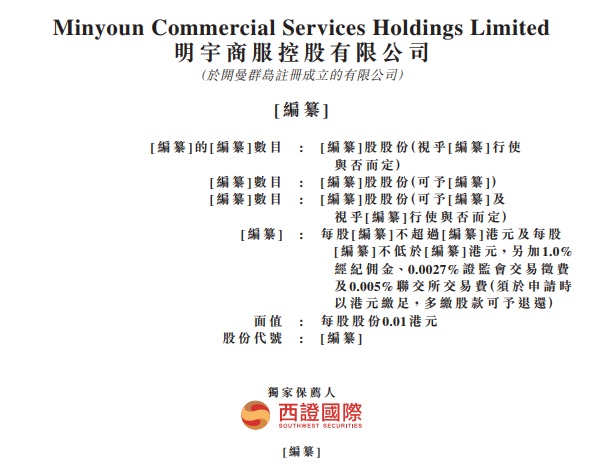 智通财经APP获悉,据港交所4月28日披露,明宇商服控股有限公司向港交所递交主板上市申请,西证国际为其独家保荐人。