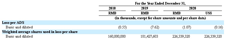 基本和摊薄后每股亏损0.21元,上年同期1.52元;基本和摊薄后每ADS亏损1.07元,上年同期7.62元。