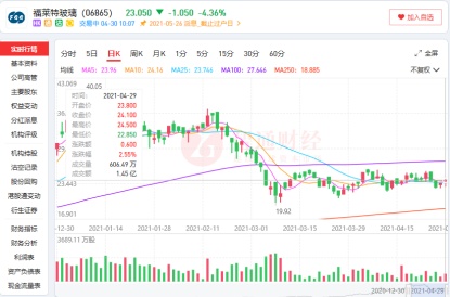 智通财经APP了解到,福莱特玻璃不仅业绩延续高增长,而且在二级市场也颇得投资者青眼。4月29日收盘,福莱特玻璃A股涨幅高达9.25%,收报28.35元/股,成交额达10.05亿元。港股股价亦实现增长,收报24.1港元/股,涨幅达2.55%,成交额为1.45亿元。
