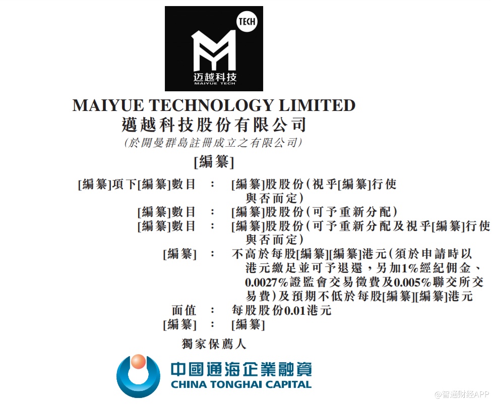 智通财经APP获悉,据港交所4月30日披露,迈越科技股份有限公司递表港交所主板,中国通海企业融资为独家保荐人。